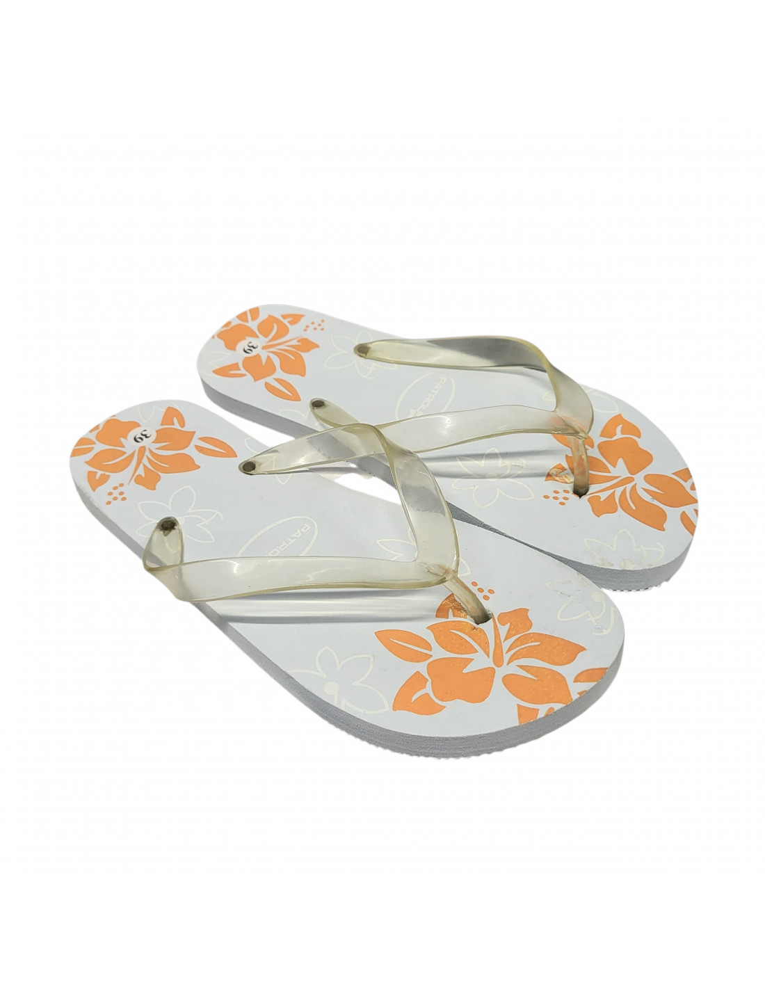 Slapi femei din spuma, infradito,albi, cu modele florale