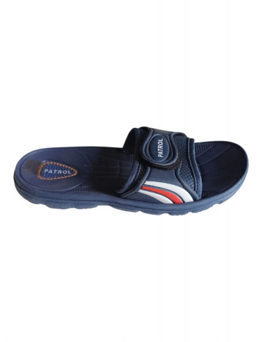 Slapi baieti, din spuma cu insertii de material textil, culoare bleumarin