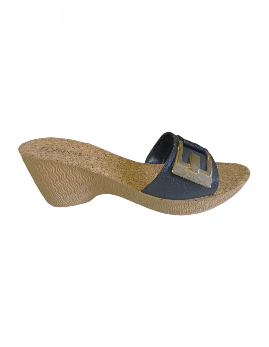 Saboti femei, din piele ecologica, negri, cu catarama decorativa