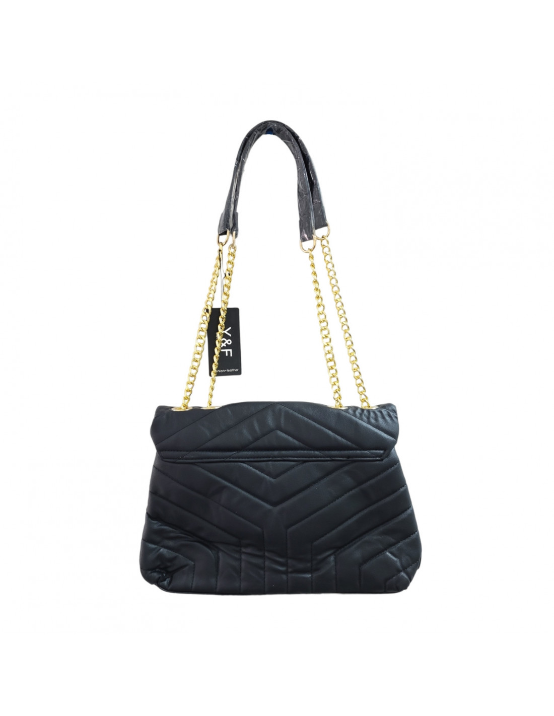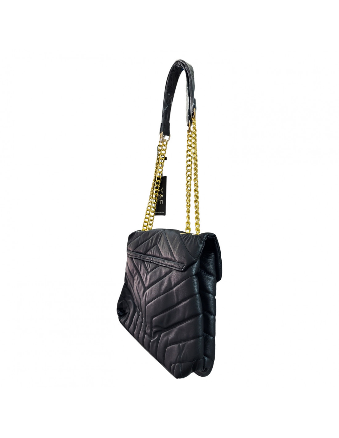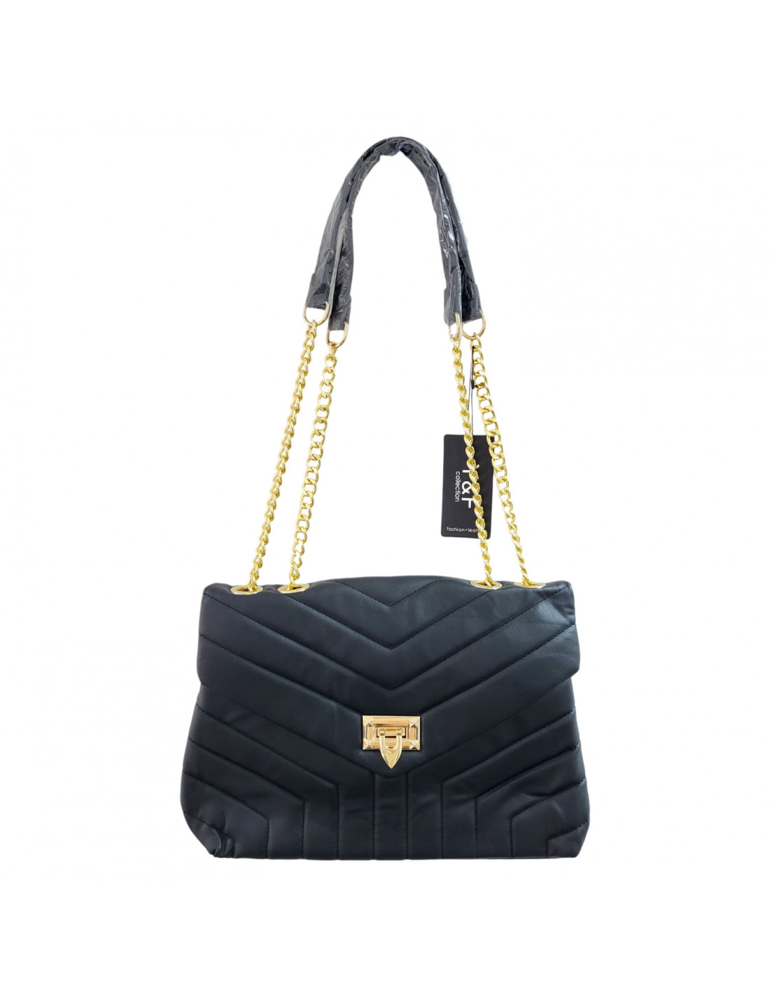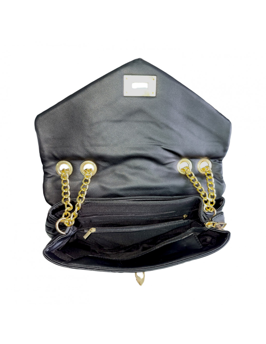 Geanta cu lant auriu si maner din piele eco pentru dama, culoarea neagra.