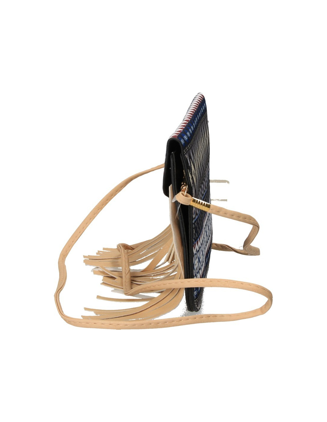 Model în stil boho, decorat cu franjuri și o pereche de ciucuri.